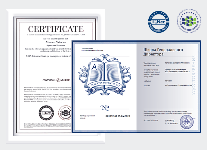 - Сертификат от Eqavet и IQNet